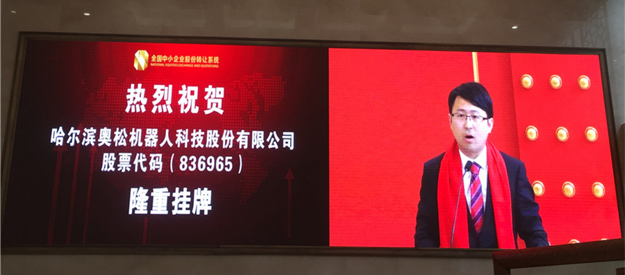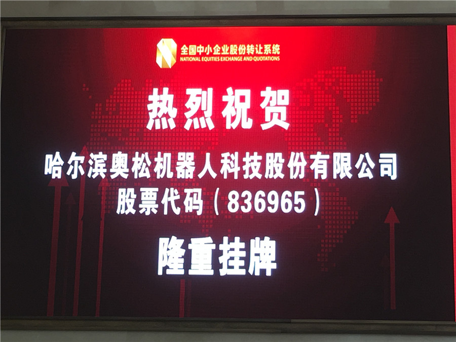 哈尔滨奥松机器人科技股份有限公司(证券简称:奥机器人,证券代码:836965),作为中国最早一批致力于教育化机器人和智能电子开源硬件研发,普及和推广的高新技术企业,于2016年6月3日在北京市西城区金融大街金阳大厦举行了隆重的新三板挂牌仪式,标志着中国机器人创客教育行业第一股,今天正式通过全国中小企业股份转让系统中心的平台,走进了社会各界及广大投资人的视野。